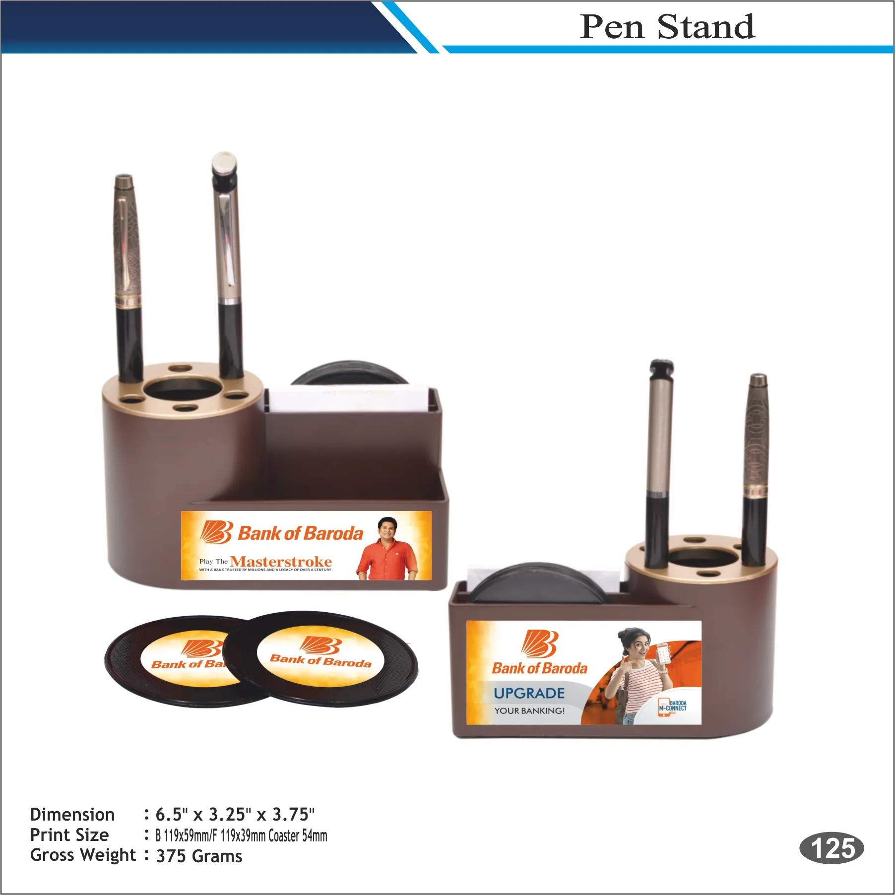 Customizable Desk Organizer Pen Stand with Coasters MOQ 100 Pcs (Brown)