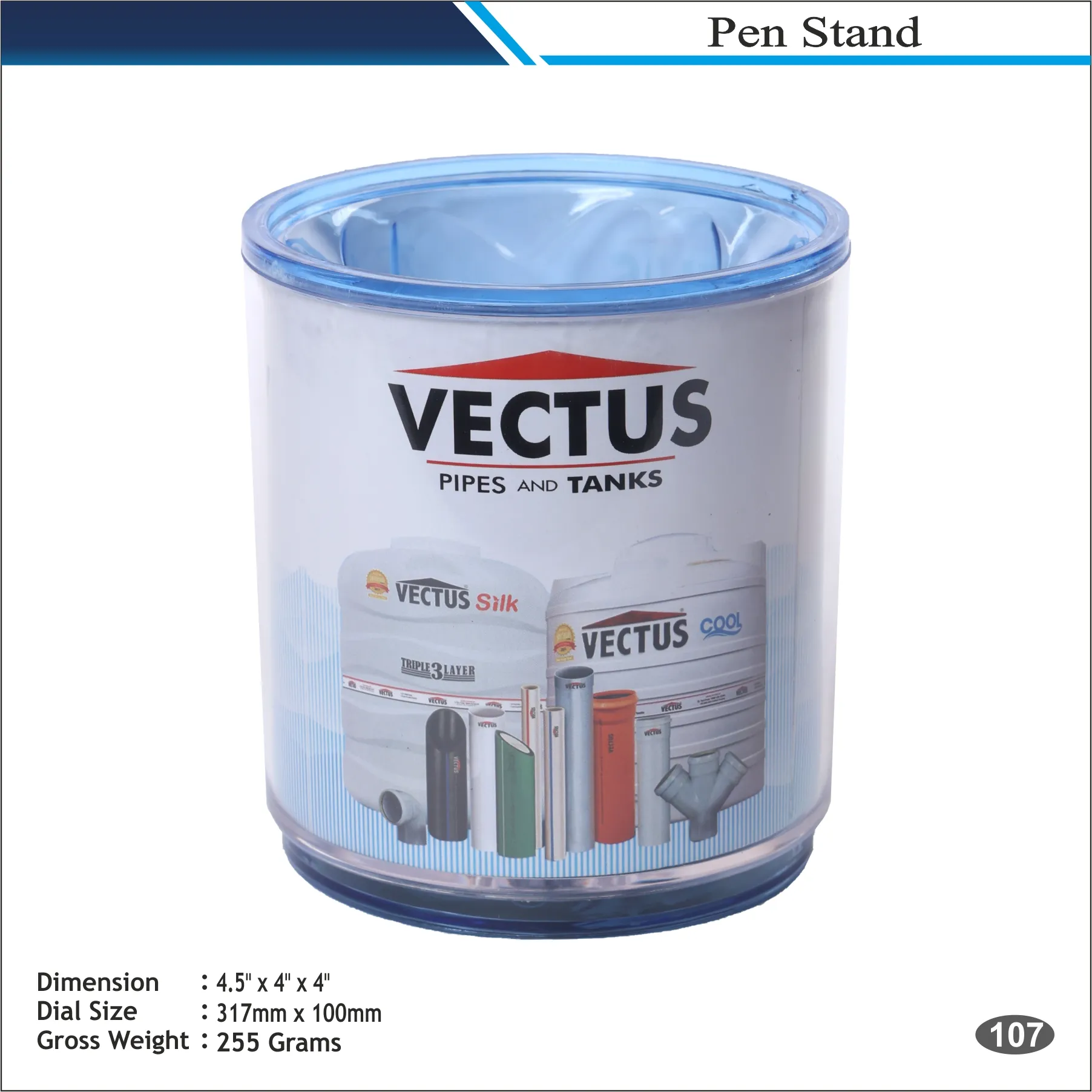 Customizable Round Pen Stand with Branding Sleeve MOQ 100 Pcs (Blue & White)