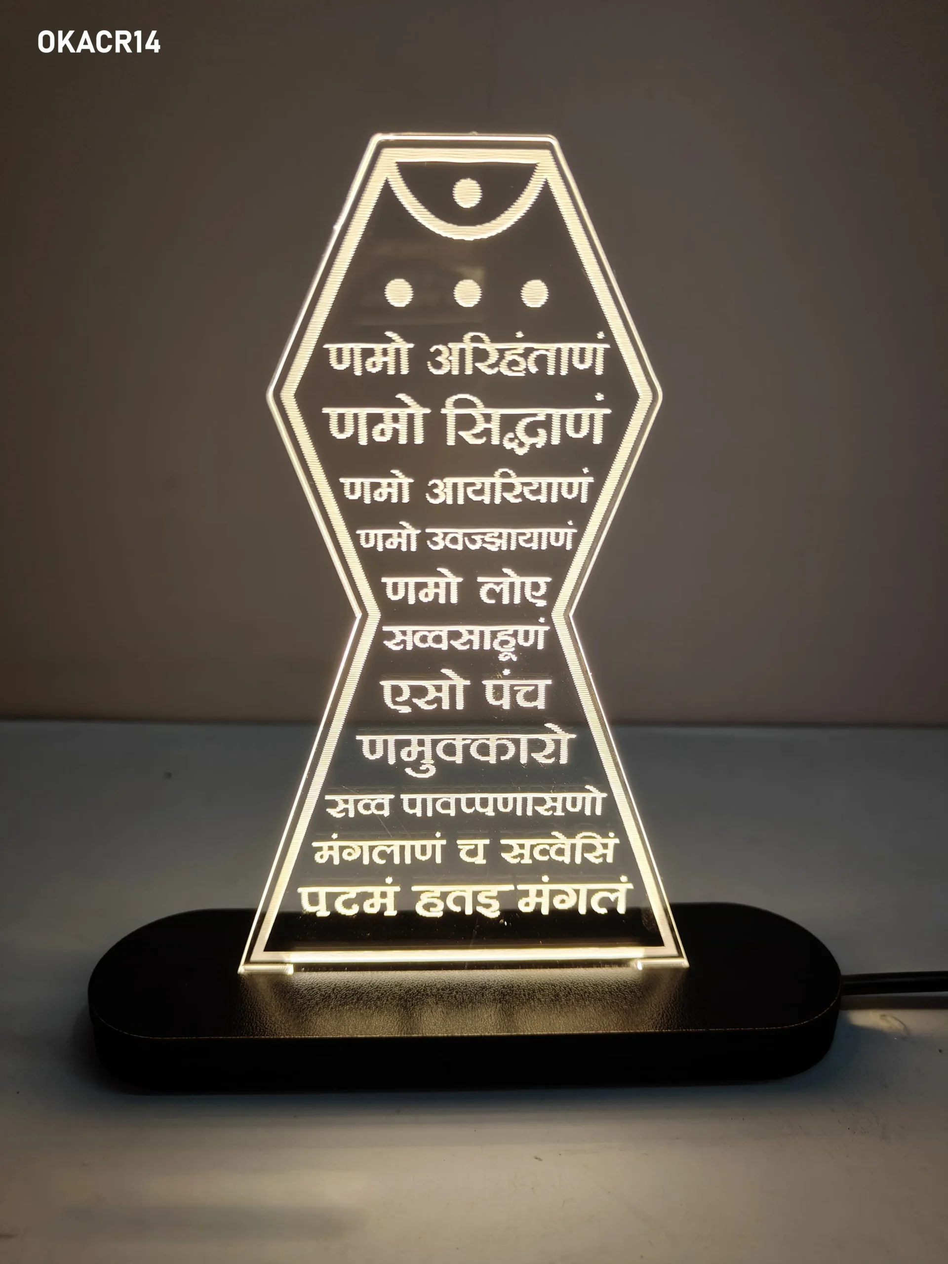 The warm LED light base gives the acrylic panel a bright and attractive glow, making it perfect for home temples, office desks, living rooms, and decorative displays. Its compact tabletop design allows easy placement anywhere while adding a modern and spiritual touch.