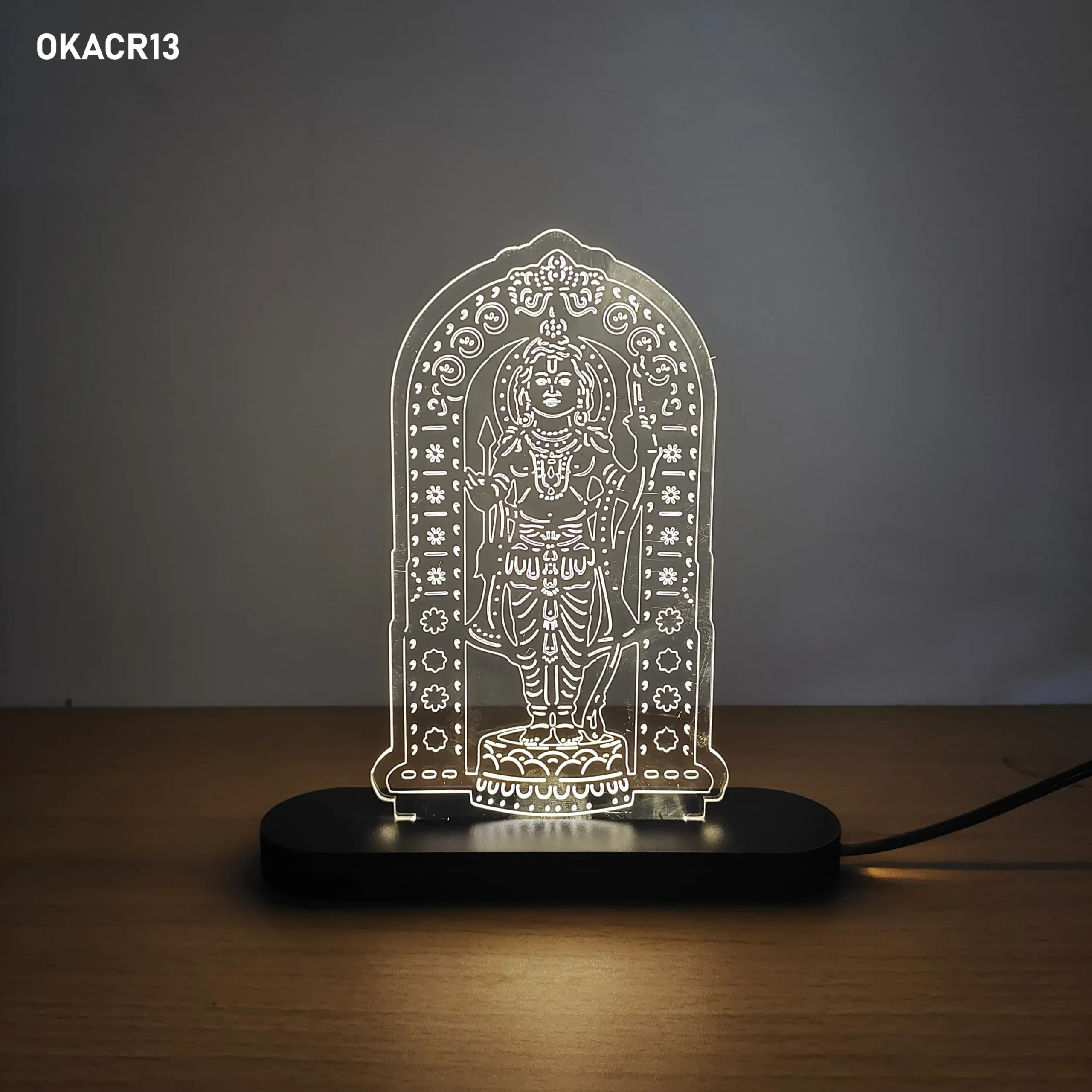 The warm LED light base gives the acrylic panel a bright and attractive glow, making it perfect for home temples, office desks, living rooms, and decorative displays. Its compact tabletop design allows easy placement anywhere while adding a modern and spiritual touch.